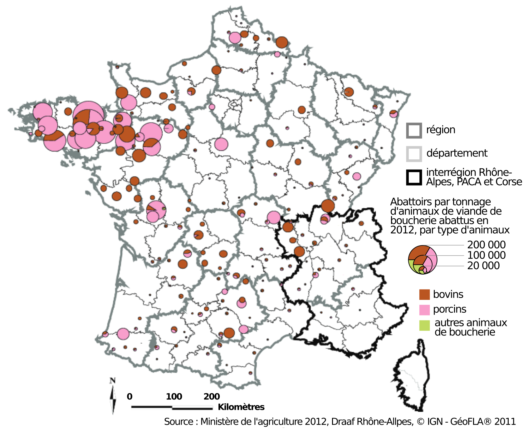 Pour les animaux de boucherie (bovins, ovins, caprins, porcins, chevaux) ; Le Cain B. (2016) Trop concentrés, multi-espèces : pourquoi les abattoirs français sont critiqués. Le Figaro, données Agreste 2008. Accessible en ligne.14